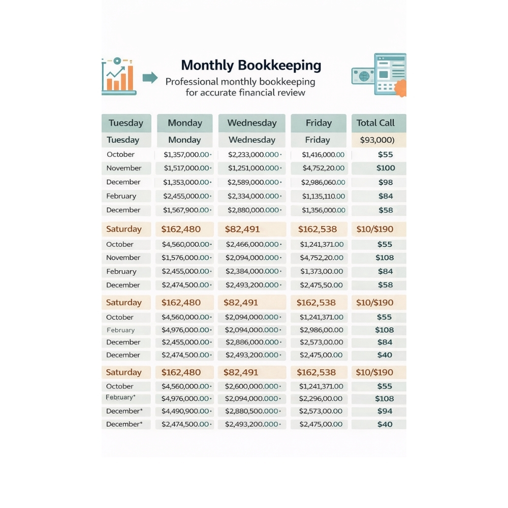 Keep your business finances organized and compliant with our professional monthly bookkeeping services. We accurately record transactions, reconcile bank and credit card accounts, and deliver clear monthly financial reports—so you always know where your business stands.